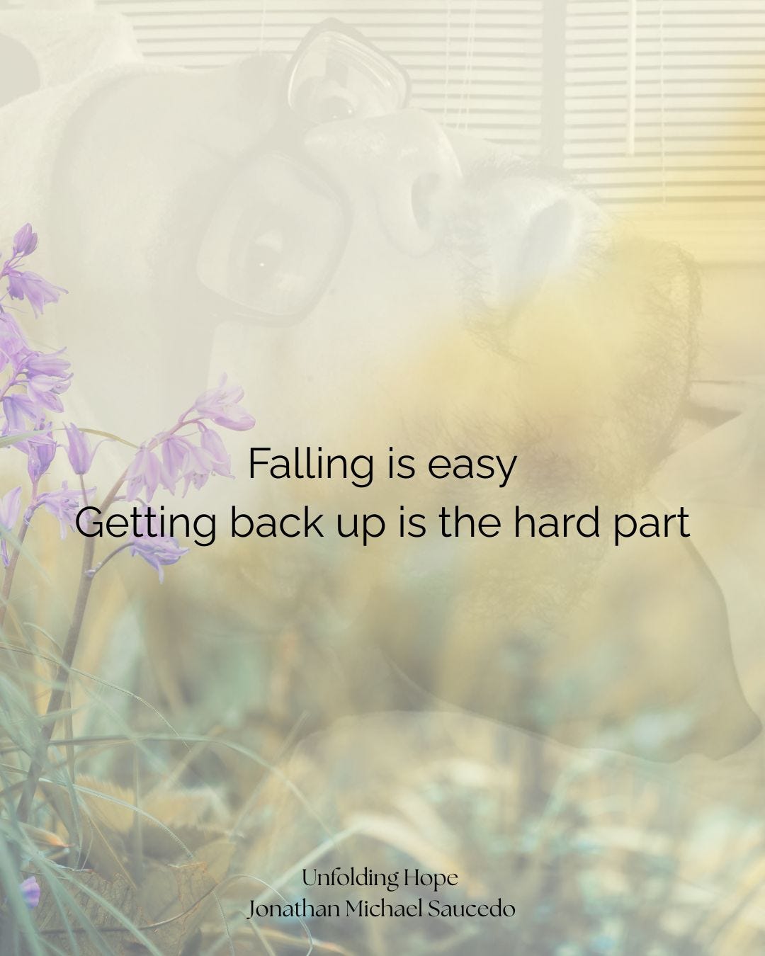 Falling is easy. Getting back up is the hard part. Moving forward is the world.